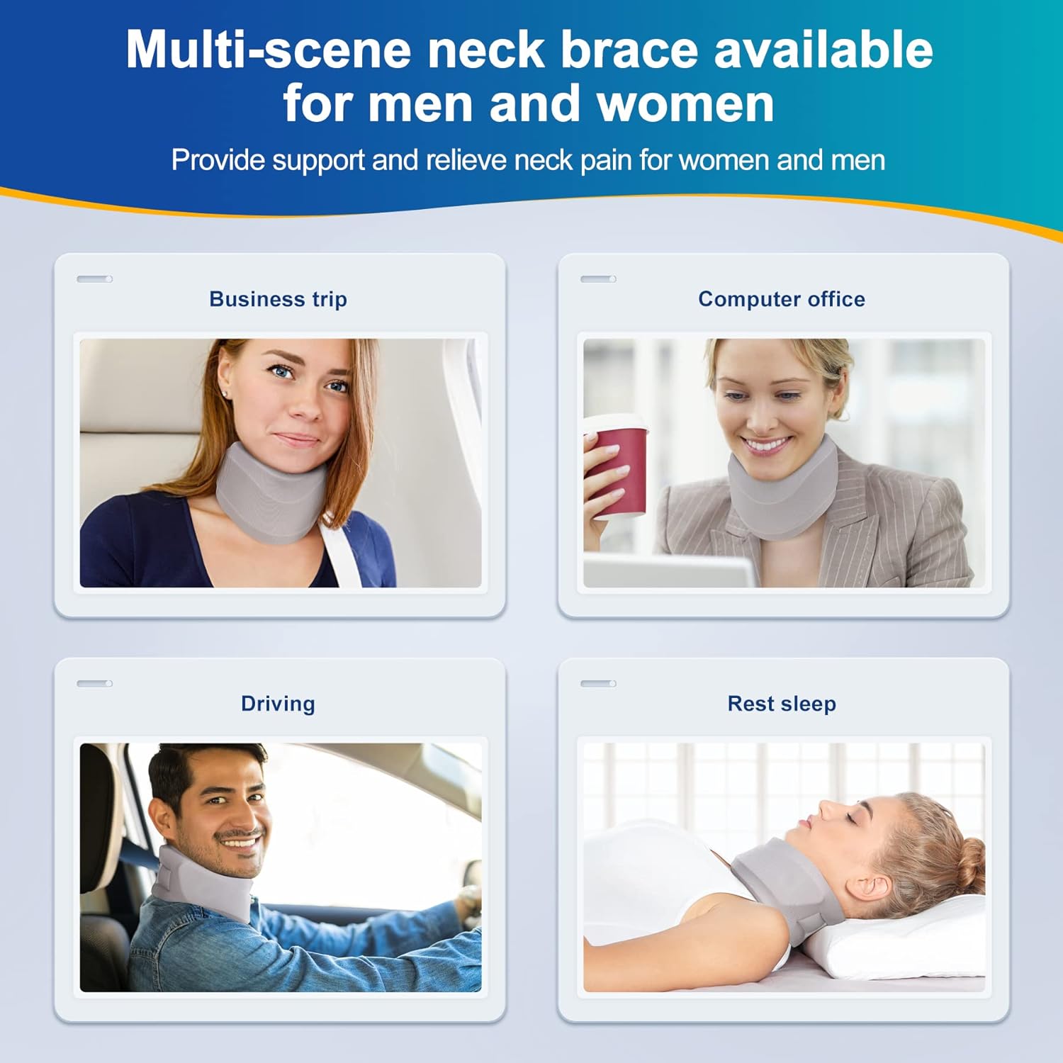 Instructions: For optimal use, ensure the neck brace is fitted correctly. Adjust the tightness using the hook and loop design, and maintain the product by cleaning the cover regularly.