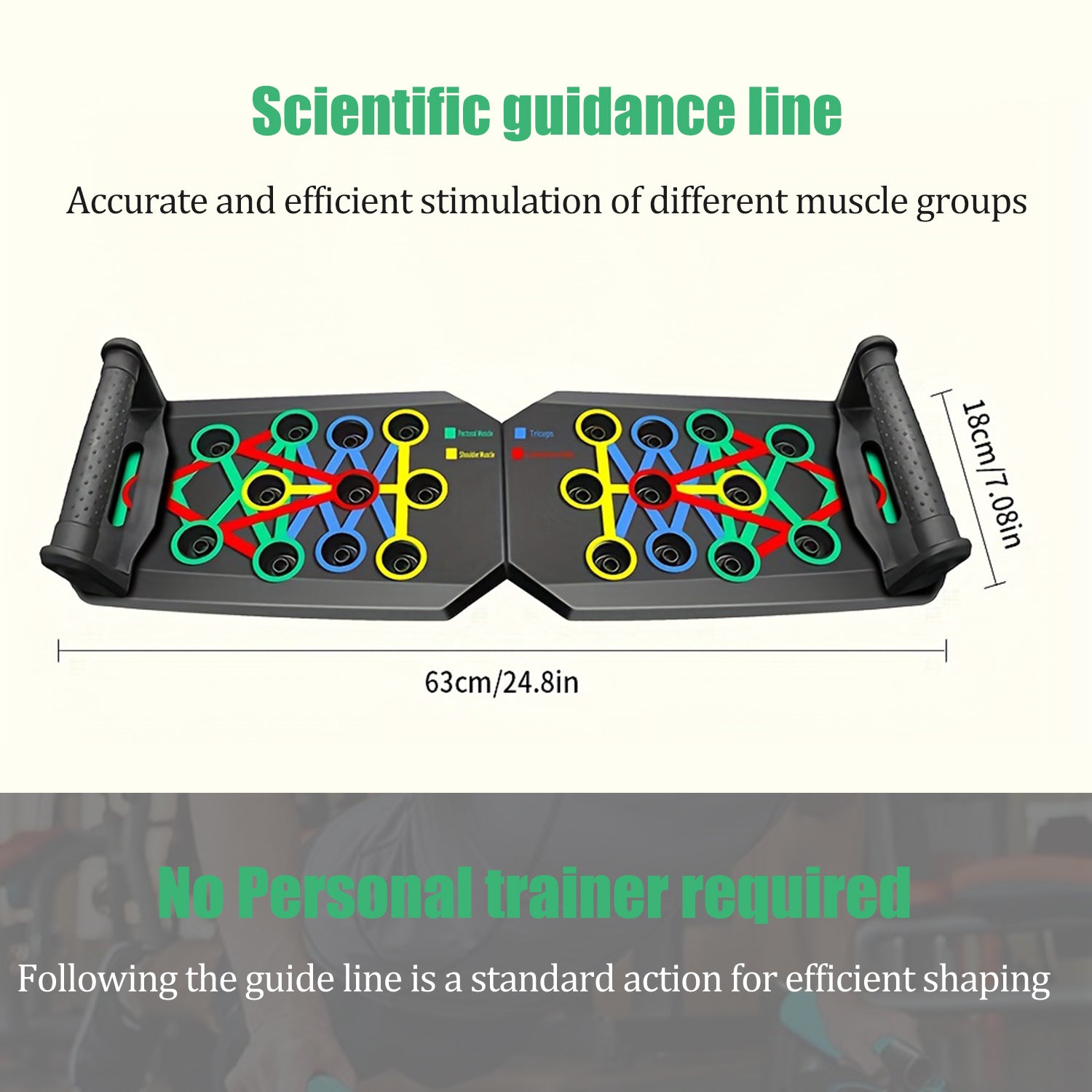 • Color-Coded Push Plates: Distinct color zones target specific muscles—chest, abs, arms, and back—for a balanced, efficient workout.