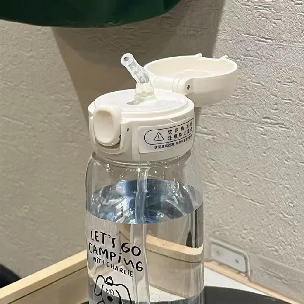 Premium 600ml Eco-Friendly Water Bottle with Straw – Large Capacity, Drop-Resistant, Portable PC Plastic Cup for Home, Office, Outdoor, and Travel, Cartoon Ice Suction Cup Design