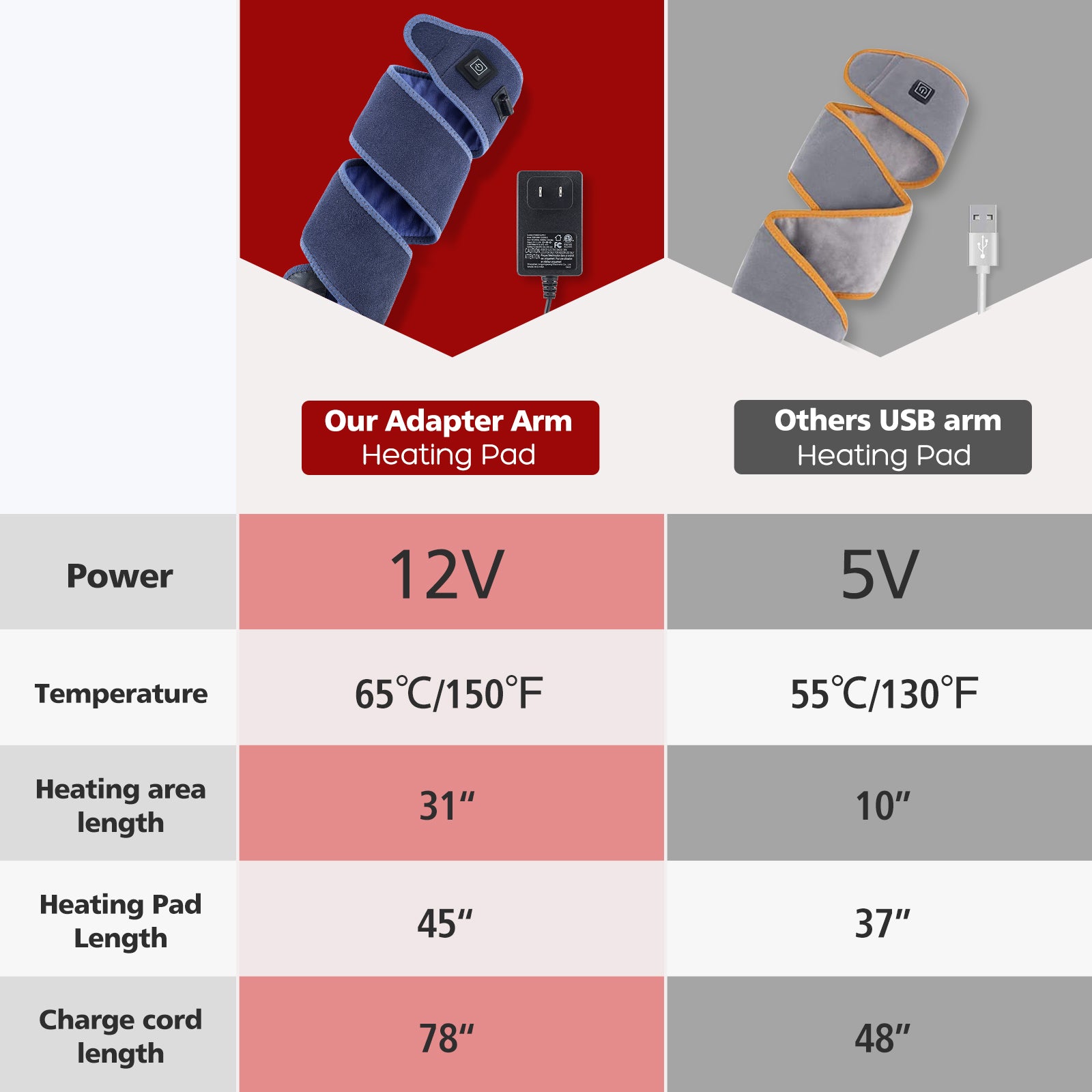 • Heating Pad Wrap: 100 cm long design for targeted heat therapy across arms, elbows, wrists, legs, knees, and feet.