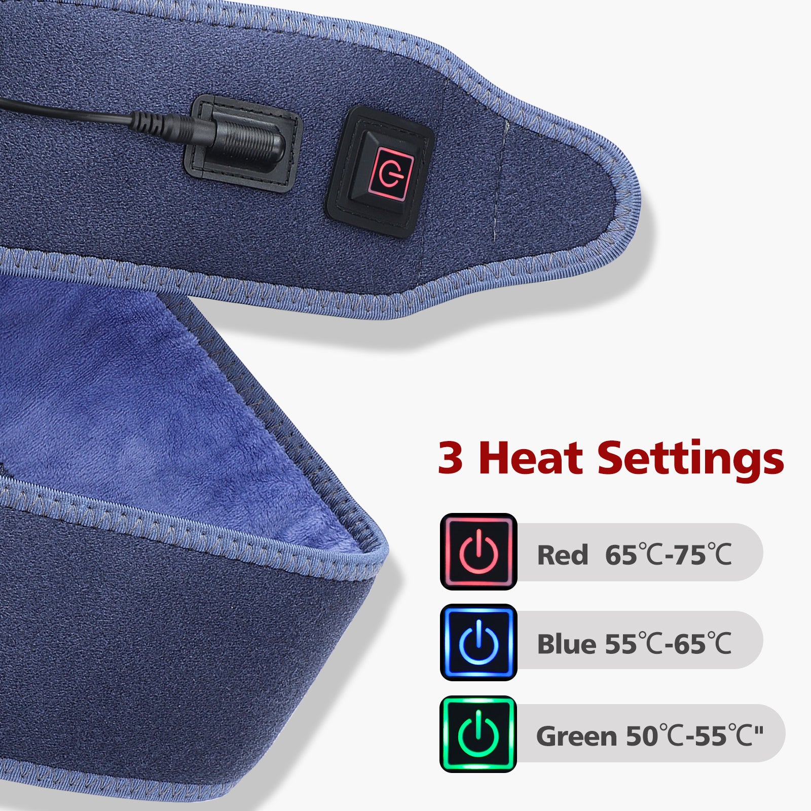 • 3-Level Heat Settings: One-key control with adjustable temperatures of 55°C, 65°C, and 75°C for customized relief.