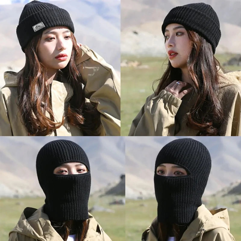 • Versatile Use: Can be worn as a full balaclava for full face coverage or as a hat for a casual, stylish look.