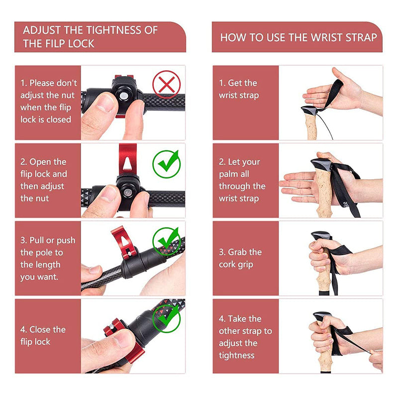 • Design: Collapsible and telescopic trekking poles for effortless storage and portability, perfect for travel and adventure.